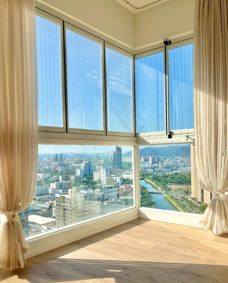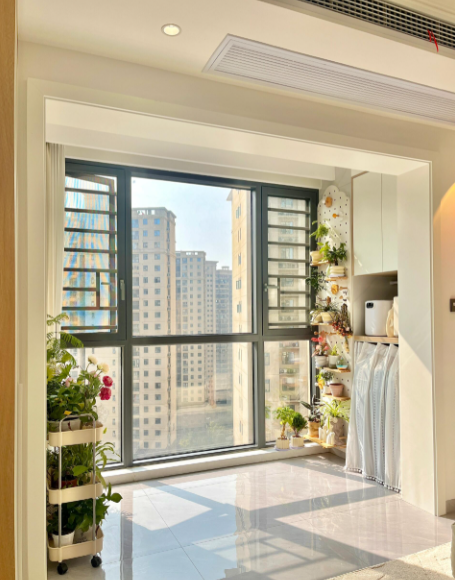 更贴心的是,它的开窗方式能灵活调整。想通风的时候,把窗户往内倒开一条缝,桂香能飘进来,又不用担心雨水打湿阳台的地板;周末想晒太阳,就把窗户完全推开,阳台和客厅连在一起,空间一下子变得开阔。很多杭州业主说,装了系统门窗后,阳台不再是 “闲置角落”,而是变成了喝下午茶、陪孩子玩耍、甚至办公的 “小天地”。